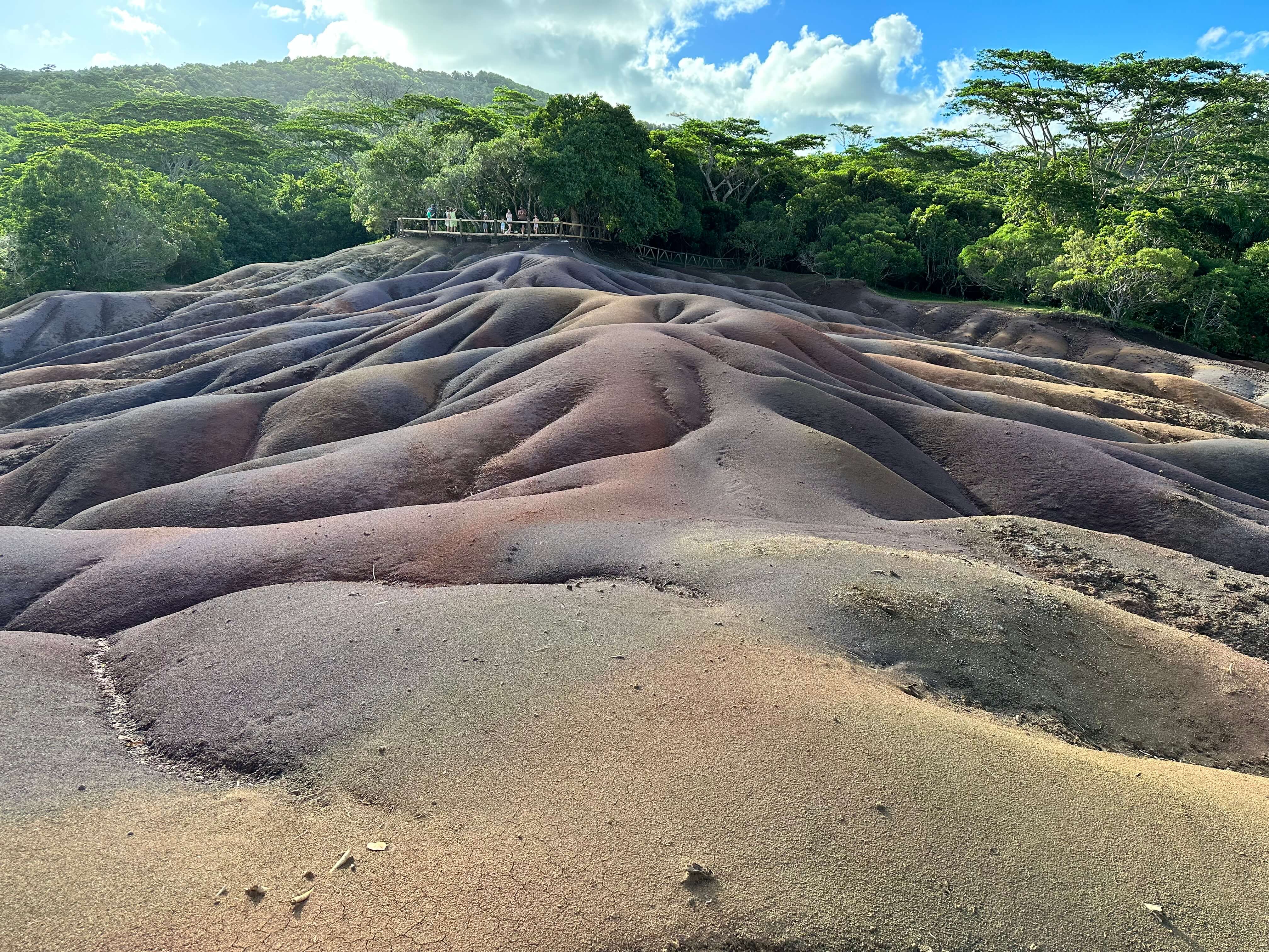 Завершился день осмотром одной из главных достопримечательностей небольшого государства – многоцветной земли Шамарель. Она состоит из песчаных дюн семи различных оттенков.