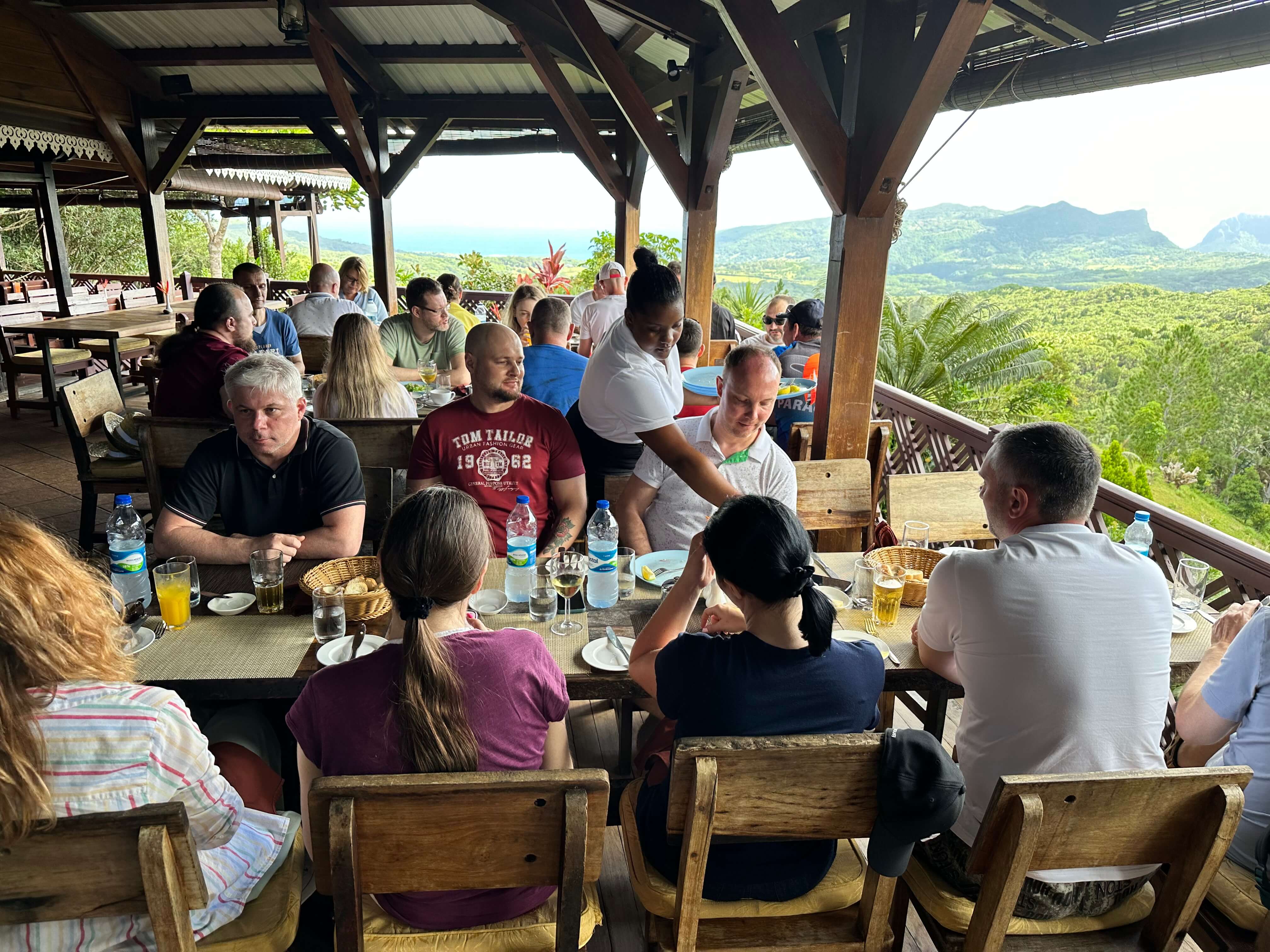 На обед мы остановились в изысканном ресторане Varnque sur Morne, где помимо островной кулинарии насладились великолепными видами, открывшимися с веранды ресторана