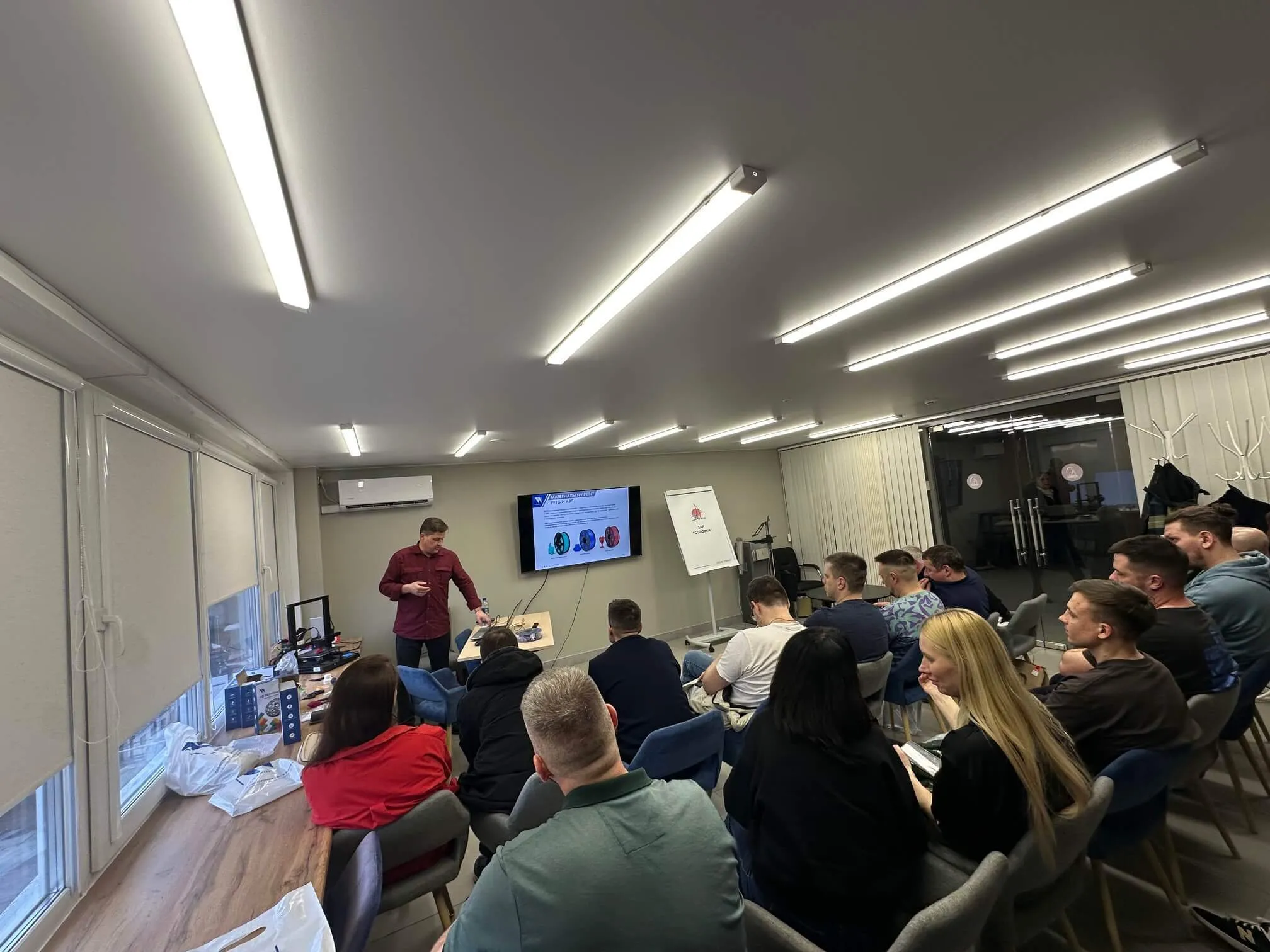 Во время официальной части наш спикер продакт-менеджер Алексей Горелов очень увлекательно рассказал о всех продуктах, которые на сегодняшний день есть у NV PRINT по направлению 3D Наши партнеры смогли увидеть работу 3D оборудования, которое мы привезли с собой, а также увидели «в деле» филаменты NV PRINT, с помощью которых мы печатали различные объекты, чтобы продемонстрировать разнообразие предлагаемых NV PRINT вариантов продукции для 3D печати