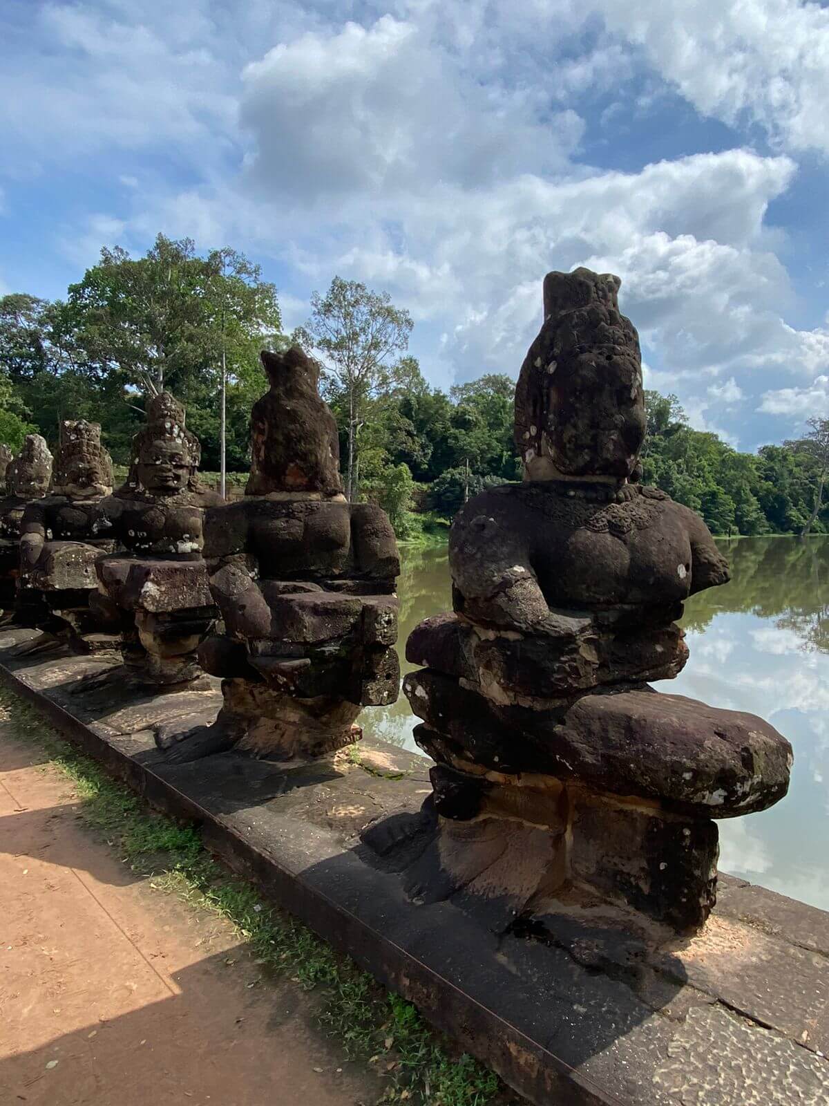 Начали осмотр с Южных ворот Ангкор Тома, увенчанных четырьмя безмятежно улыбающимися лицами Авалокитешвары. Посетили храмы Байон, Та Кео, и храм Та Пром.