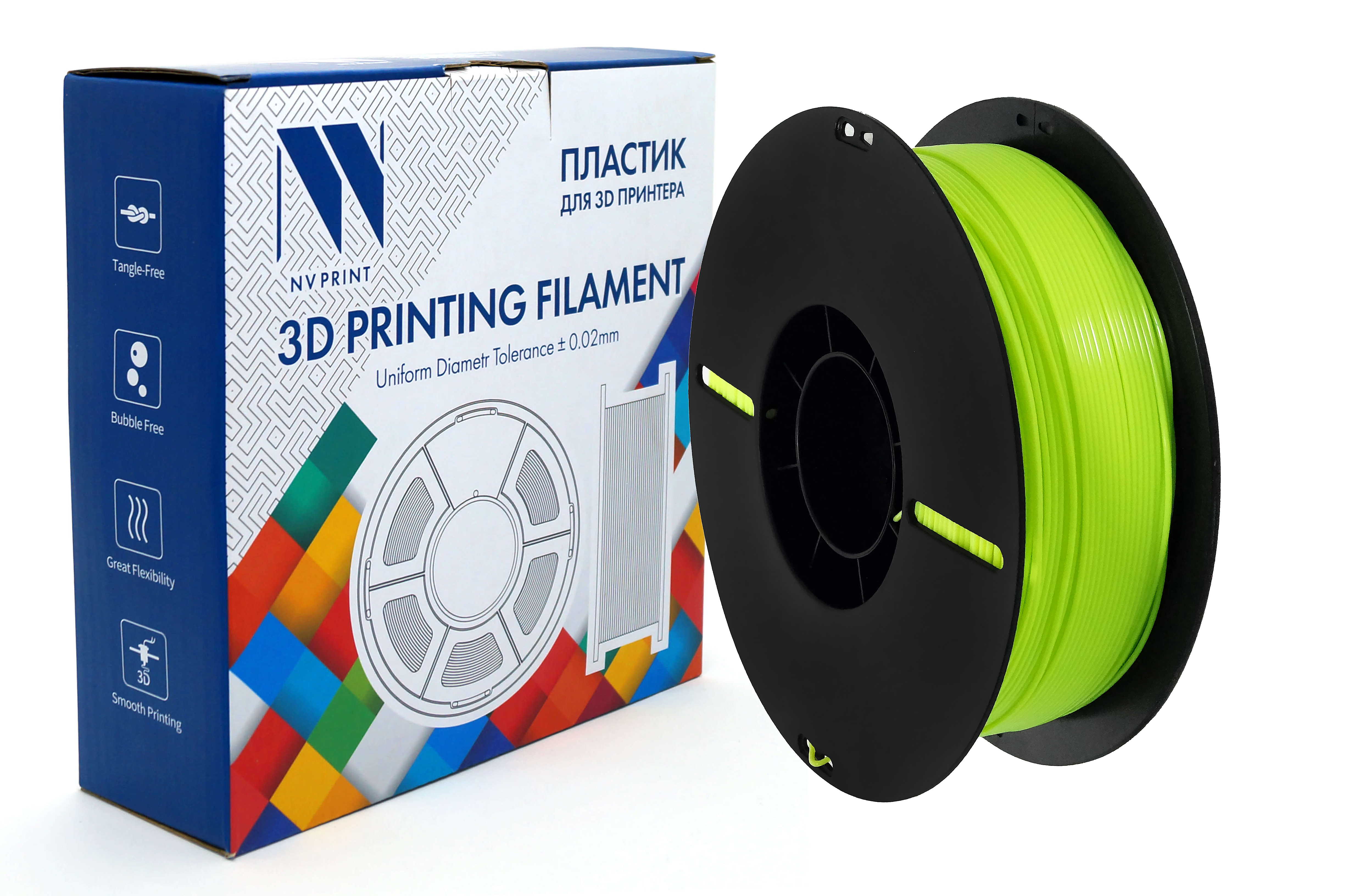 Филамент NV PRINT PETG Lemon yellow для 3D печати диаметр 1.75мм длина 330 метров масса 1 кг