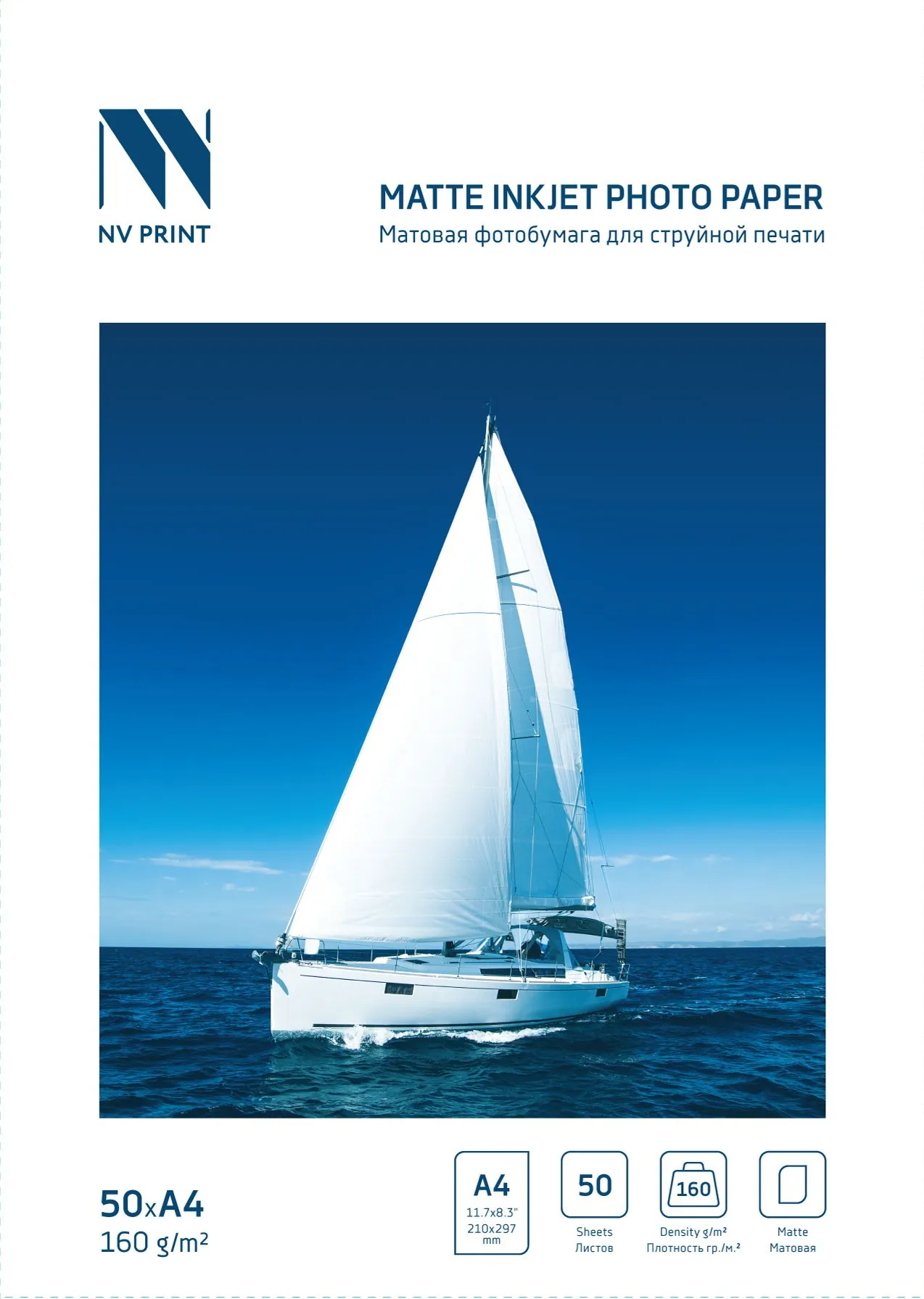 Матовая фотобумага для струйной печати 160г/м2 A4 50 листов