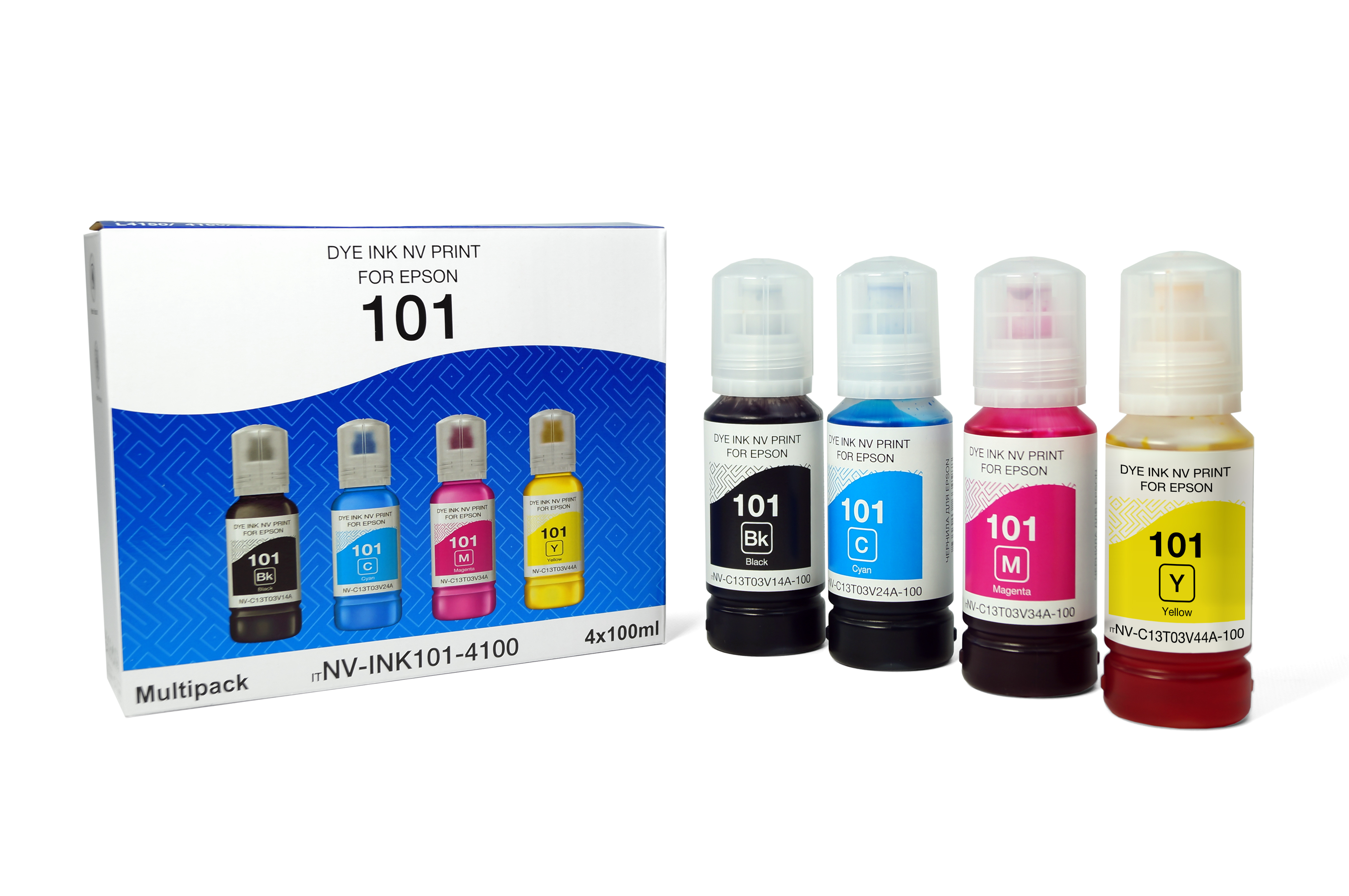 Чернила NVP 101 для принтеров Epson, набор 4 цвета по 100 мл совместимые