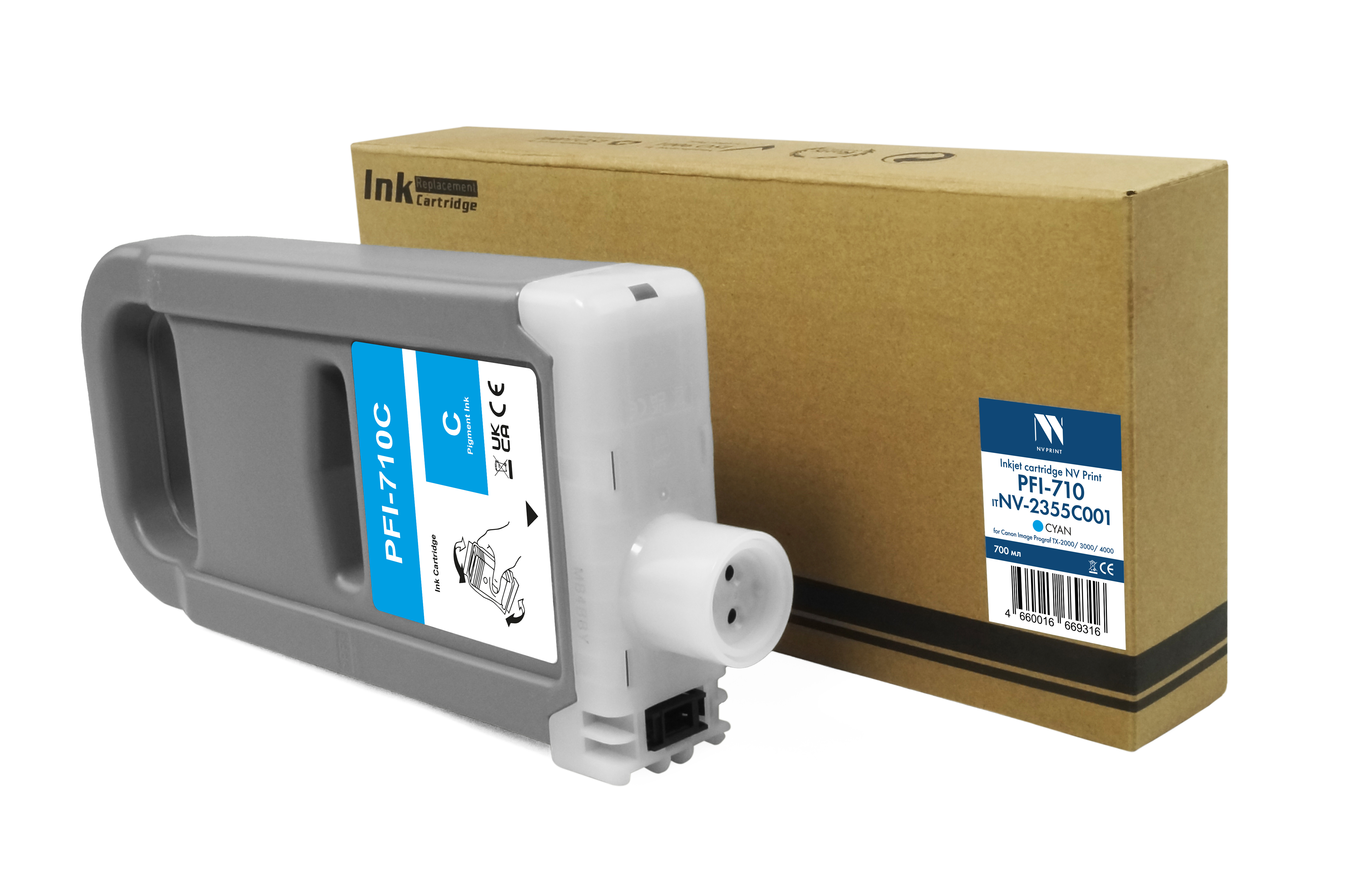 Струйный картридж NVP PFI-710C (NV-2355C001) Cyan для Canon ImagePrograf TX-2000/3000/4000 (700 мл) совместимый