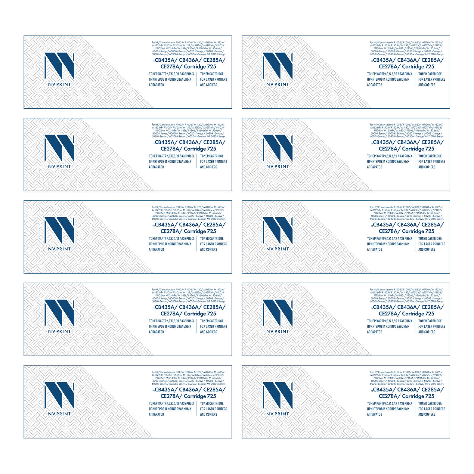 | Артикул | NV-CB435A/CB436A/CE285A/CE278A/NV-725 UNIV-SET10 |