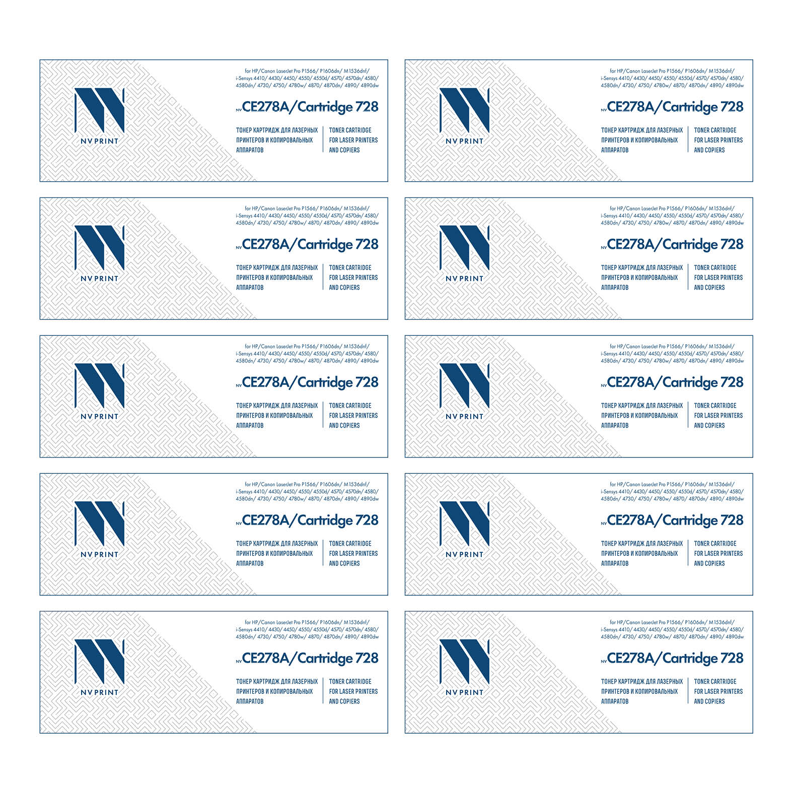 Картридж NVP совместимый NV-CE278A/NV-728 UNIV-SET10 для HP/Canon LaserJet Pro P1566/ P1606dn/ M1536dnf/ i-Sensys 4410/ 4430/ 4450/ 4550/ 4550d/ 4570/ 4570dn/ 4580/ 4580dn/ 4730/ 4750/ 4780w/ 4870/ 4870dn/ 4890/ 4890dw (2100k) (10 шт)